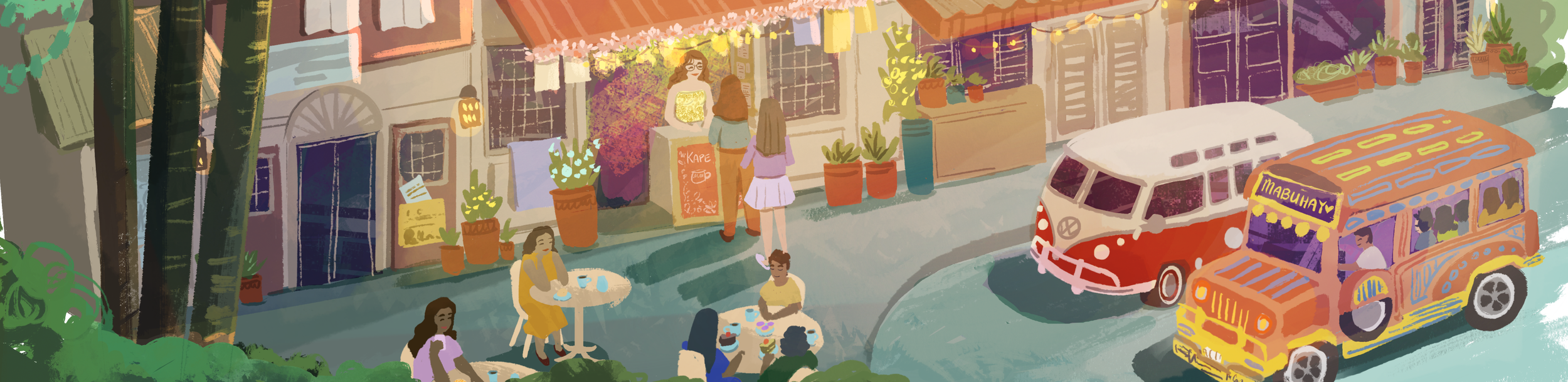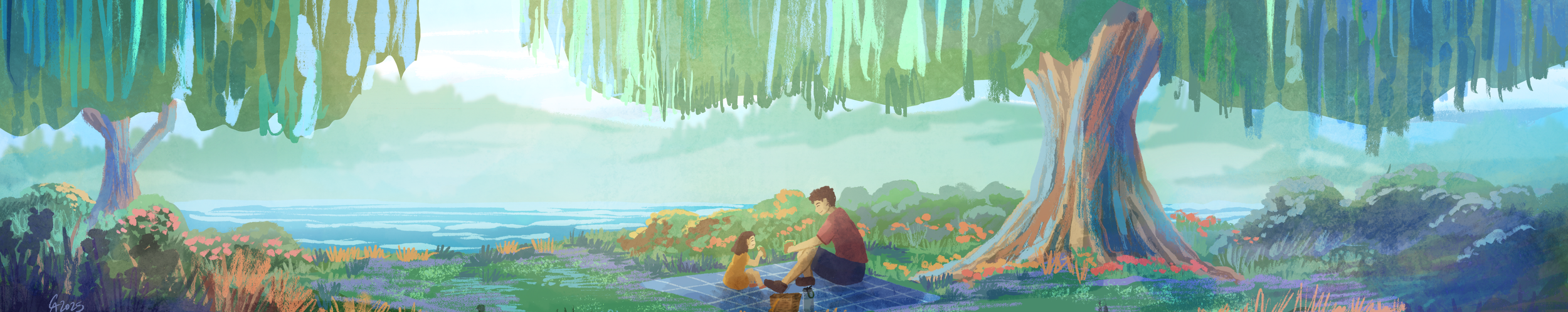 Creating colorful artwork of whimsical moments.